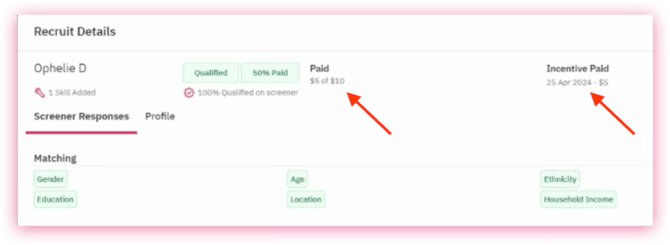 If you choose to pay a participant for partial completion, you can pay them the full incentive via the Pay Incentive button.