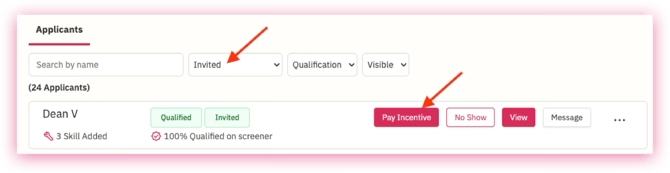 Click 'Pay Incentive' on the relevant respondent.